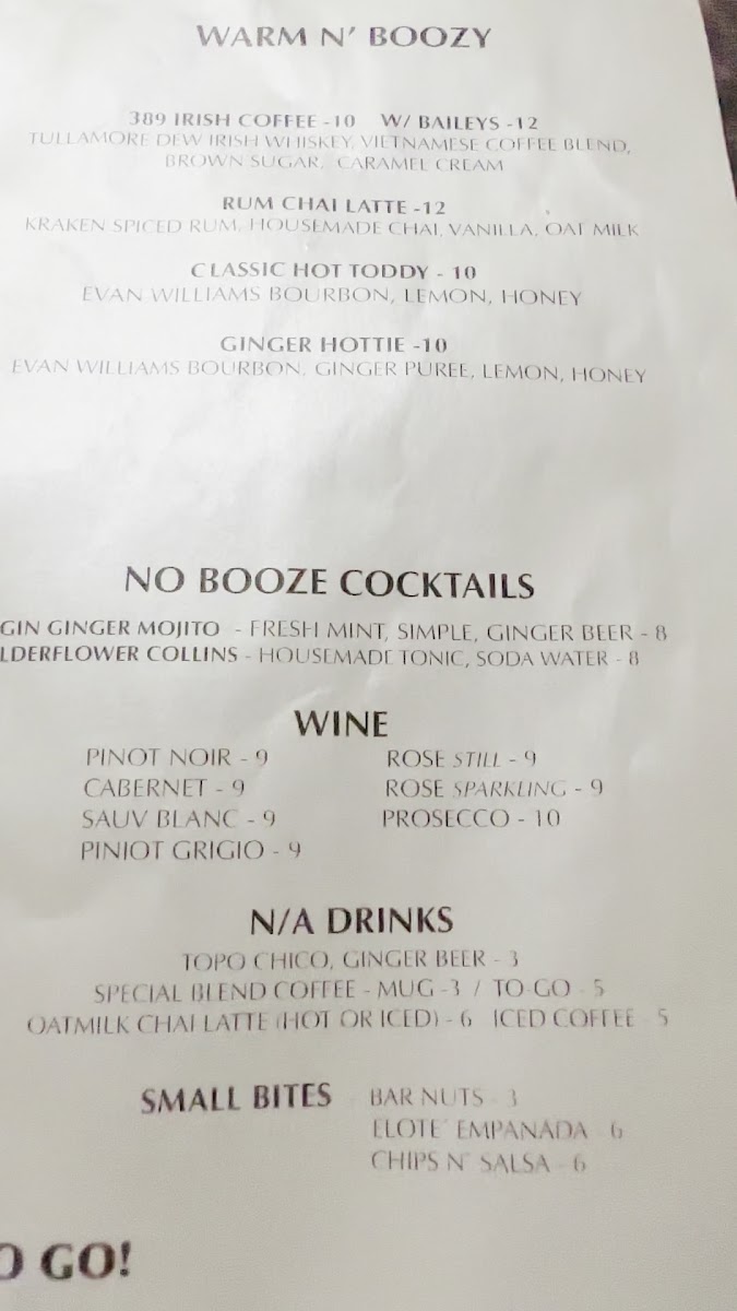 Room 389’s menu reflects the space itself—unpretentious, cozy, and inviting at any hour. Whether you’re stopping by to recharge with a coffee or linger into the evening over cocktails, the offerings create a sense of comfort and connection that fits the neighborhood setting and the friendly, laid-back crowd.